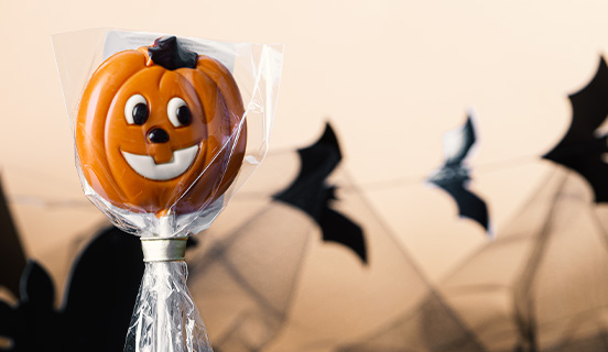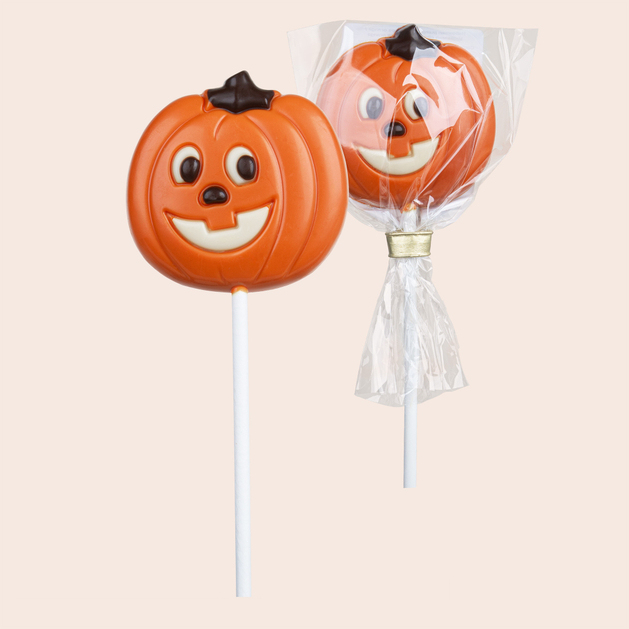 Suchen Sie ein einzigartiges Halloween-Geschenk? Unser kürbisförmiger Lolli ist eine köstliche Kombination aus hochwertiger belgischer weißer Schokolade mit Details aus klassischer weißer und dunkler Schokolade. Die Basis besteht aus samtiger weißer Schokolade, und die präzise gearbeiteten Details verleihen dem Lolli einen einzigartigen Charakter und Halloween-Charme. Jeder Lolli wird unmittelbar vor dem Versand in dekoratives Geschenkpapier verpackt, um maximale Frische zu gewährleisten und sofort verschenkfertig zu sein. Er ist die perfekte süße Ergänzung für Halloween-Spaß oder ein einzigartiges „Süßigkeiten“-Geschenk.Warum ein Schoko-Kürbis-Lolli?