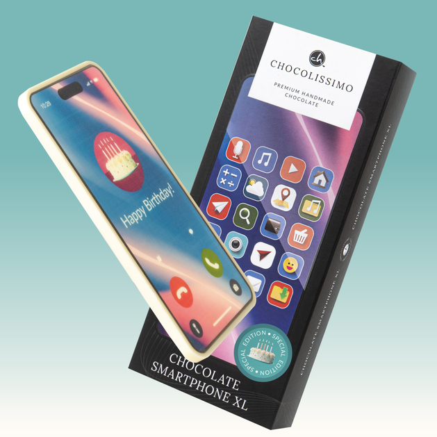 Das Schokoladen-Smartphone zum Geburtstag „Happy Birthday“ ist ein originelles und eindrucksvolles Geschenk, das modernes Design mit einer klassischen, fröhlichen Botschaft verbindet. Dieses außergewöhnliche Schokoladen-Smartphone für Geburtstagsgeschenke wird handgefertigt in der Chocolissimo-Manufaktur unter der Anleitung erfahrener Chocolatiers, ausschließlich aus weißer belgischer Schokolade höchster Qualität. Jedes Exemplar wird direkt vor dem Versand gefertigt, was maximale Frische und einen perfekt samtigen Geschmack garantiert.