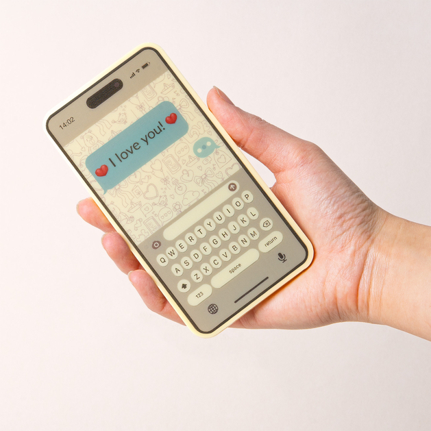 Auf dem Bildschirm des Schokoladen-Smartphones prangt ein essbarer Aufdruck mit der Nachricht "I Love You", der auf einzigartige Weise moderne Form mit warmen Gefühlen verbindet. Dieser süße Träger eines Liebesgeständnisses verwandelt eine klassische SMS in eine rührende Geste und macht das Geschenk nicht nur eindrucksvoll, sondern vor allem voller Gefühl und unvergesslicher Emotionen.