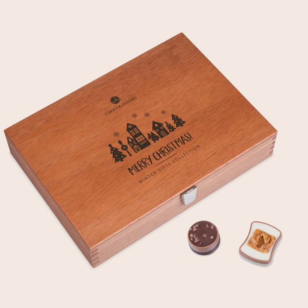 Merry Classic - Holzkästchen mit 20 handgefertigten Pralinen