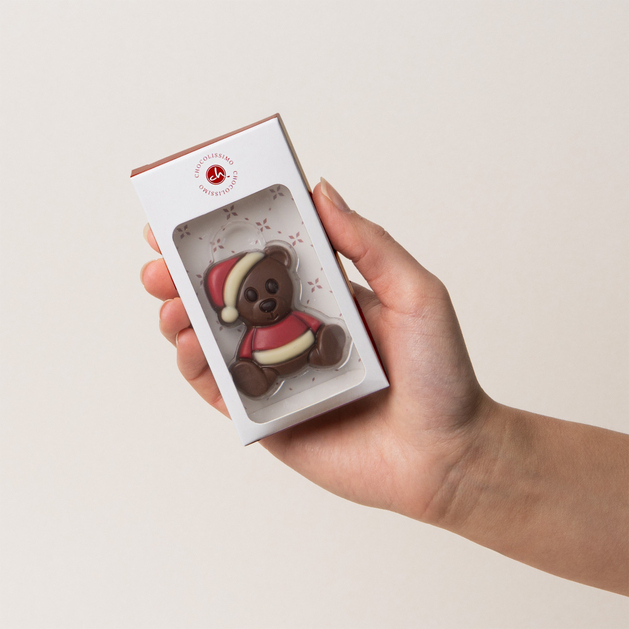 Entdecken Sie unseren süßen Weihnachts-Teddybär aus einer Mischung aus drei hochwertigen belgischen Schokoladensorten – Milch, Weiß und Zartbitter. Diese harmonische Geschmackskombination begeistert mit ihrer Zartheit, ihrem Aroma und ihrer eleganten Optik. Dieser bezaubernde Teddybär im Weihnachtskleid ist eine perfekte Geschenkidee, die Kinder und Erwachsene gleichermaßen begeistert.Jeder Schokoladen-Teddybär wird kurz vor dem Versand von Hand verpackt, um maximale Frische, ein langanhaltendes Aroma und ein perfektes Aussehen zu garantieren. Die Figur befindet sich in einer weißen Schachtel mit roten Weihnachtsmustern – elegant, ästhetisch und sofort einsatzbereit.