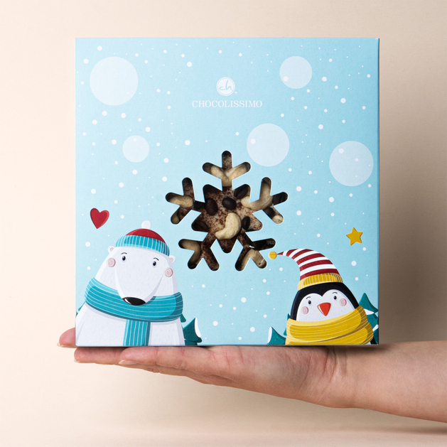 Tauchen Sie ein in den einzigartigen Geschmack der Feiertage mit unserem weißen Schokoladen-Kaffee-Weihnachtsbaum. Die einzigartige Kombination aus der zarten Süße hochwertiger belgischer Schokolade und den aromatischen Noten gerösteten Kaffees ergibt eine Komposition, die jeden Liebhaber exquisiter Desserts begeistern wird. Jeder Baum ist mit Cashewnüssen und einer Prise Zimt dekoriert, die dem Geschmack Tiefe und einen warmen, festlichen Charakter verleihen.Jeder weiße Schokoladen-Kaffee-Weihnachtsbaum wird im Chocolissimo-Atelier unter der Aufsicht erfahrener Chocolatiers handgefertigt. Diese süße Köstlichkeit wird kurz vor dem Versand von Hand verpackt, um maximale Frische, bewahrtes Aroma und perfekte Optik zu garantieren. In einer eleganten Weihnachtsbox mit Schneemann- und Pinguinmotiv sieht der Baum außergewöhnlich aus und ist bereit zum Verschenken.