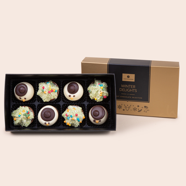 Winter Delights 8 Pralinen in Form von Weihnachtsbäumen und Schneemännern